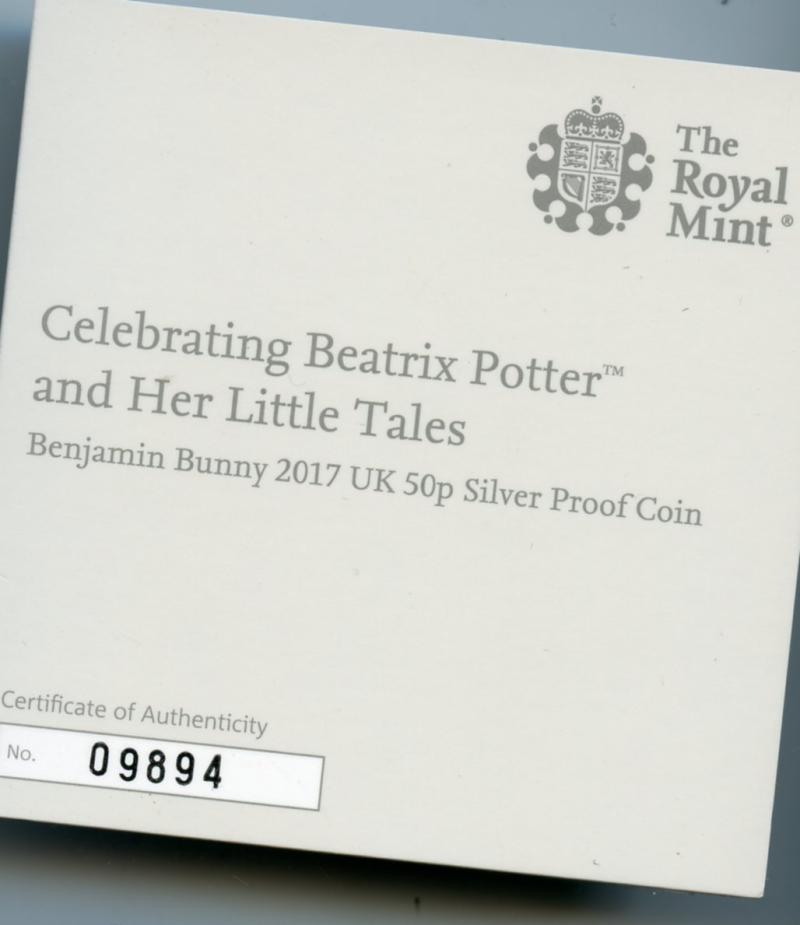 UK 2017 Beatrix Potter Benjamin Bunny Silver Proof 50 Pence Coin In Royal Mint box of Issue with certificates