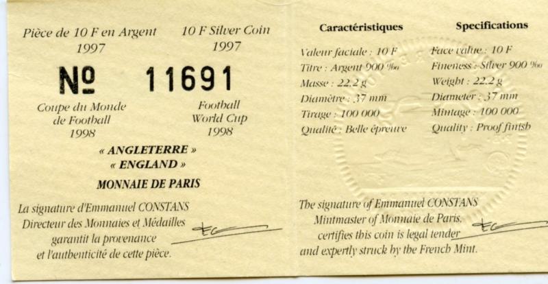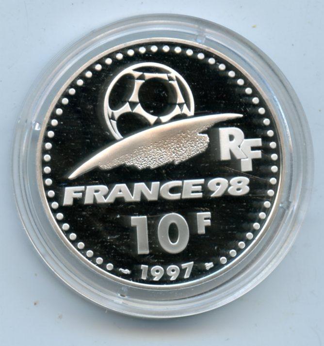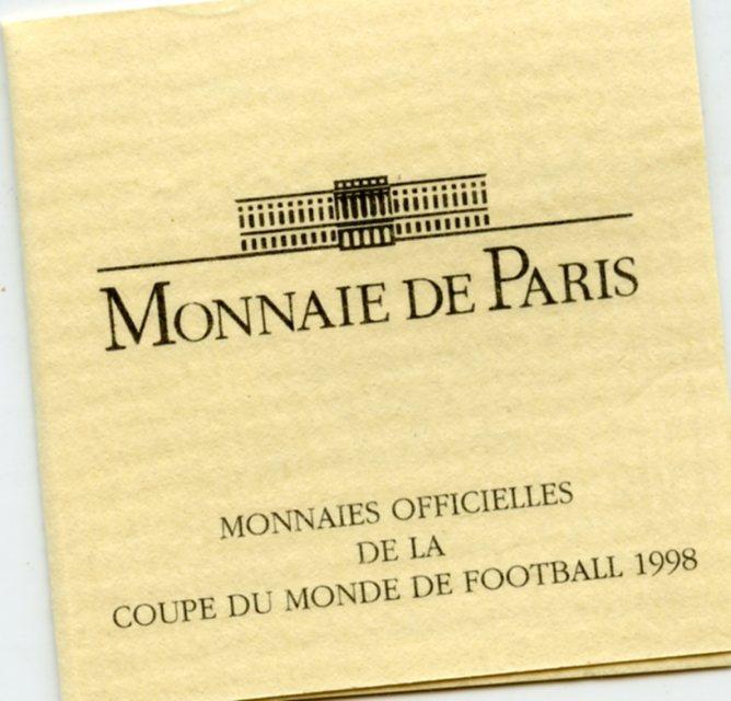 1997 France, Coupe du Monde 1998, World Cup Silver Proof 10 Francs Coin In Paris Mint Box of Issue with certificate