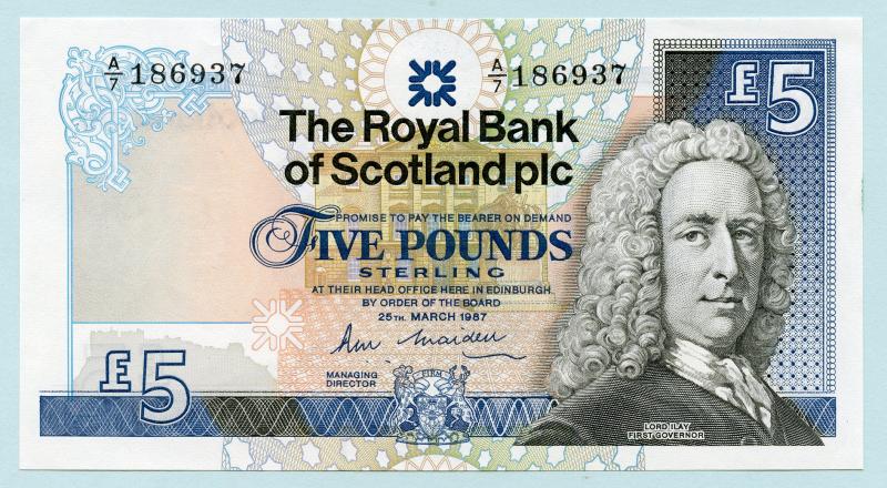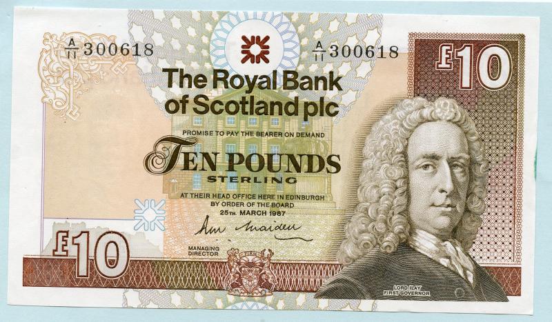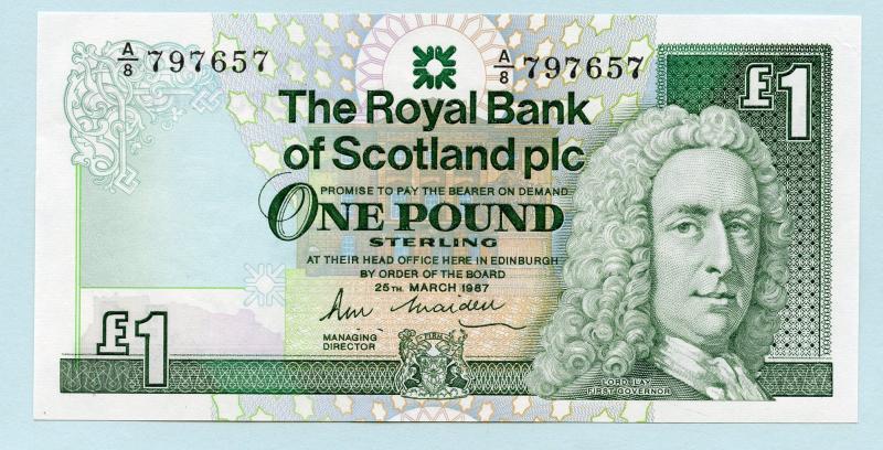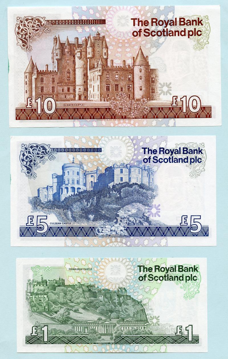 Set of Royal Bank of Scotland Uncirculated Banknotes Dated 25th March 1987 £10 Ten Pounds Note £5 Five Pounds Note £1 One Pound Note Uncirculated Banknotes
