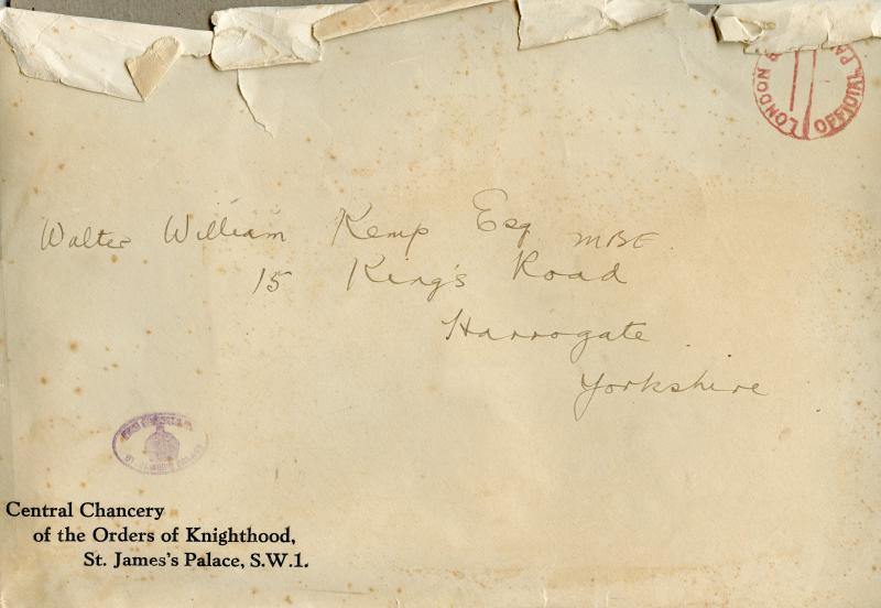 Together with Central Chancery St James Palace envelope, Certificate for the MBE and Letter to Kemp from Central Chancery St James Palace