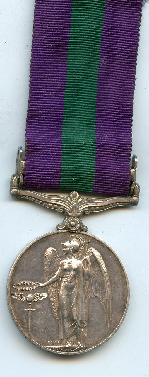 General Service Medal 1918-62 : 1 Clasp : Palestine 1945-48 19067570 Gnr A Duke. R.A. Condition GVF