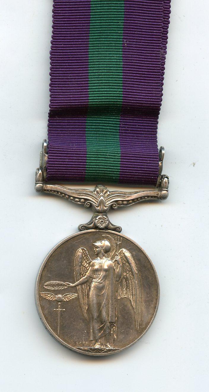 General Service Medal 1918-62 1 Clasp Cyprus; 23266859 Pte T Jamieson, HLI Condition GVF