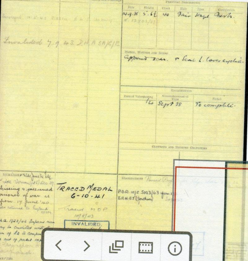 Listed as missing and presumed Prisoner of War 17th June 1940 Now returned to England