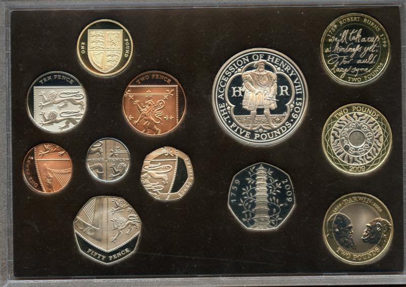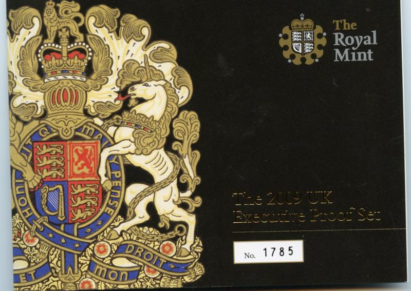 UK 2009 Royal Mint Executive Proof Coin Set with Kew Gardens 50p 12 Coins in set In Royal Mint Box of Issue Executive Issue Set in Royal Mint wooden box