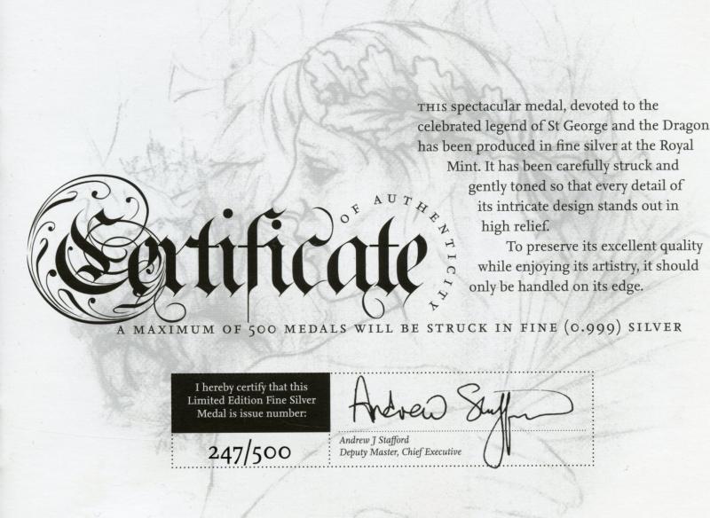 Royal Mint, St. George and The Dragon Masterpiece, fine silver medal