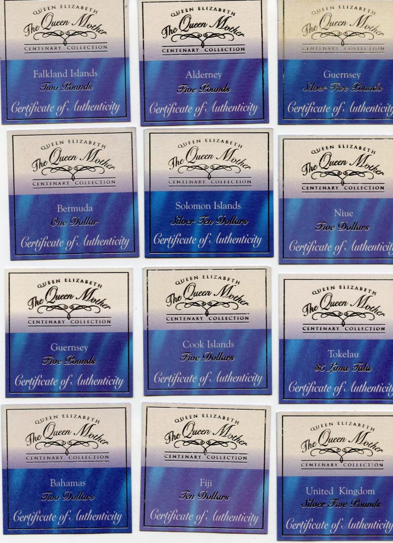 Royal Mint The Queen Mother Centenary 12 Piece Silver Coin Collection