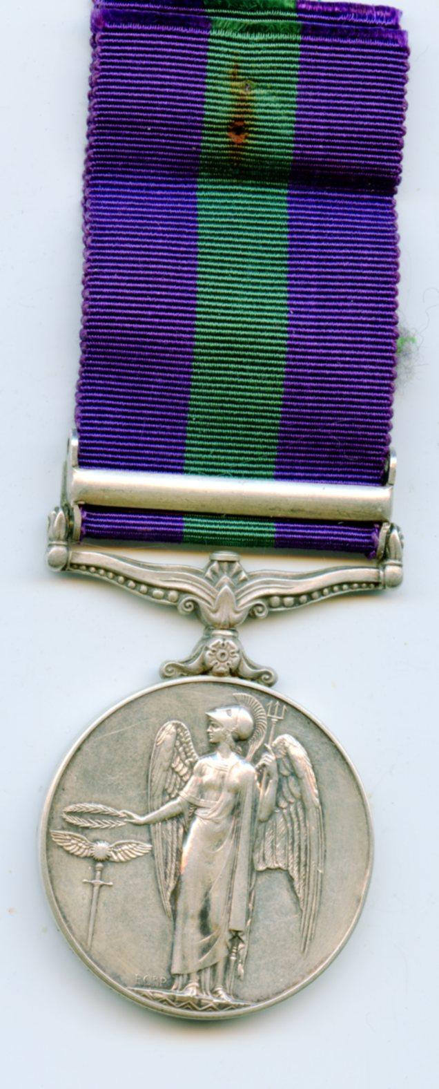 General Service Medal 1918-62 QE2 Issue 1 Clasp Malaya 230831 3 Fus D.C.Wright. R.W.F. Correction to number with 2nd last number missing Condition VF