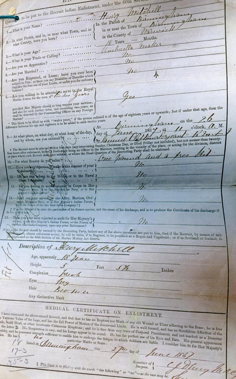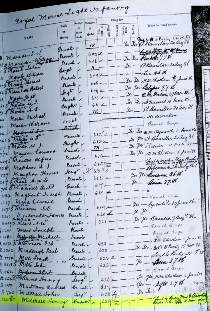 Egypt Medal 1882 : Undated Reverse 1 Clasp Tamaai To Pte Henry Mitchell, Royal Marine Light Infantry