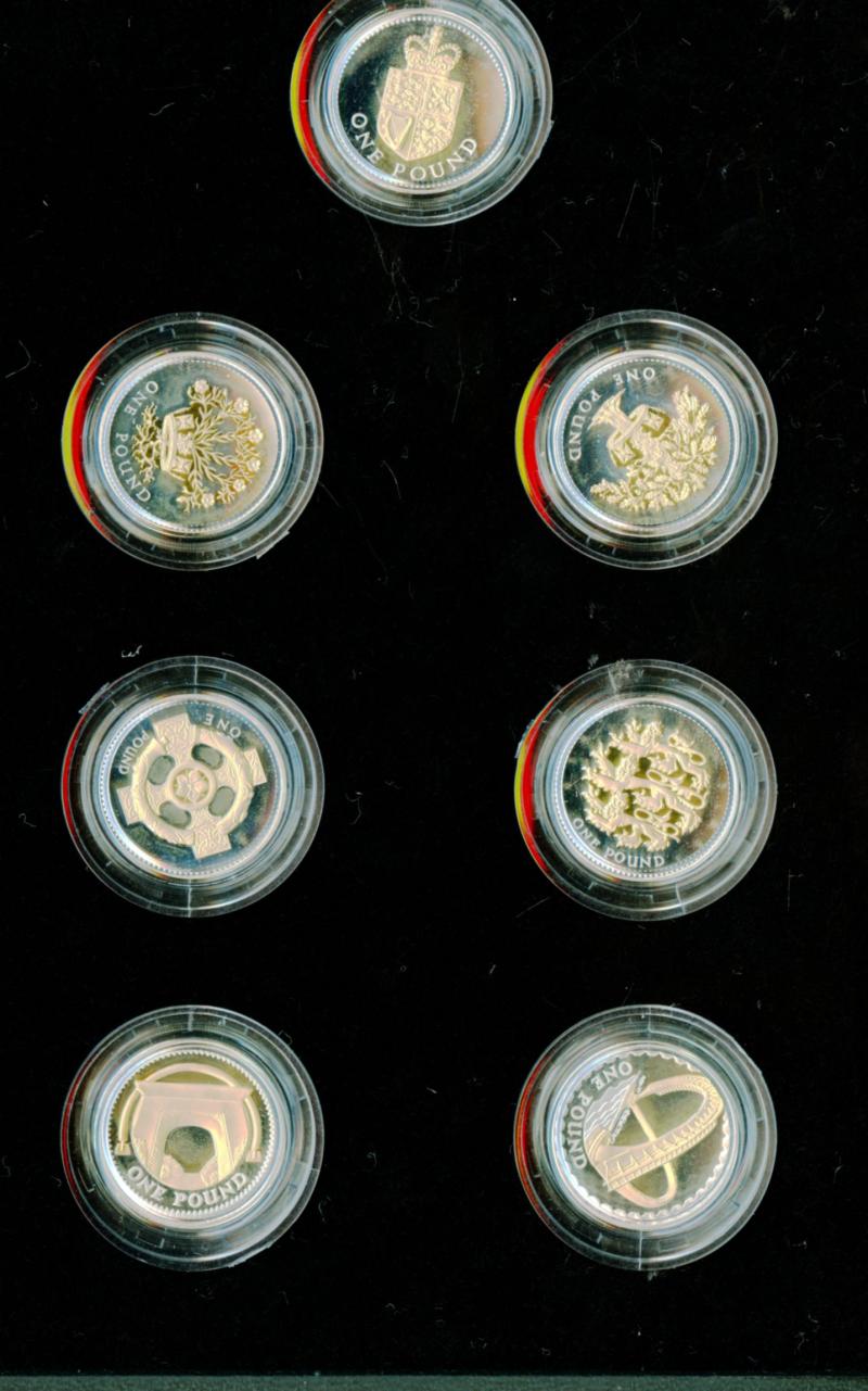 2008 UK 25th Anniversary £1 Proof Silver 14-Coin Collection 2008 UK £1 - Silver Proof 25th Anniversary 14 Coin Set The collection comprises 14 silver proof £1 coins, each one featuring a different design, which is coated in 24 carat gold, used on the £1 coin over the last quarter of a century In Royal Mint Box of Issue with certificate