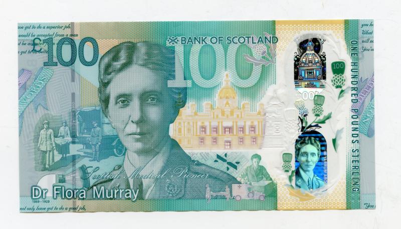 Bank of Scotland New Polymer Dr Flora Murray Commemorative £100 One Hundred Pounds Note Dated 16th August 2021