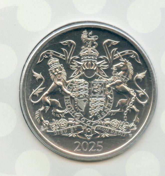 UK 2025 Coat of Arms King Charles III Brilliant Uncirculated £5 Coin In Royal Mint Packet of Issue