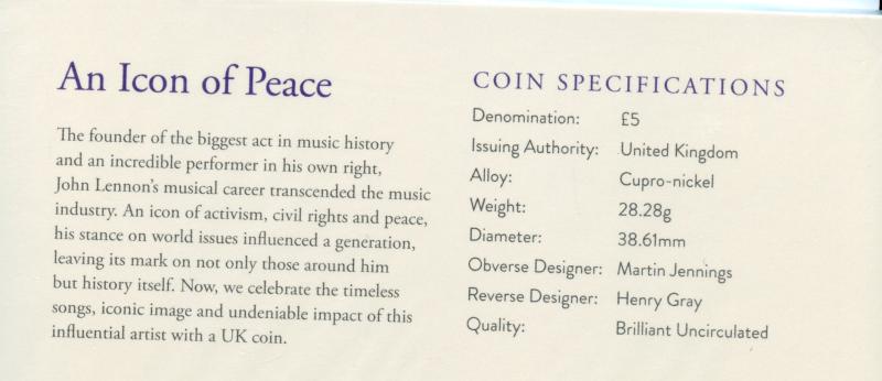 UK 2025 John Lennon Brilliant Uncirculated £5 Coin In Royal Mint Packet of Issue