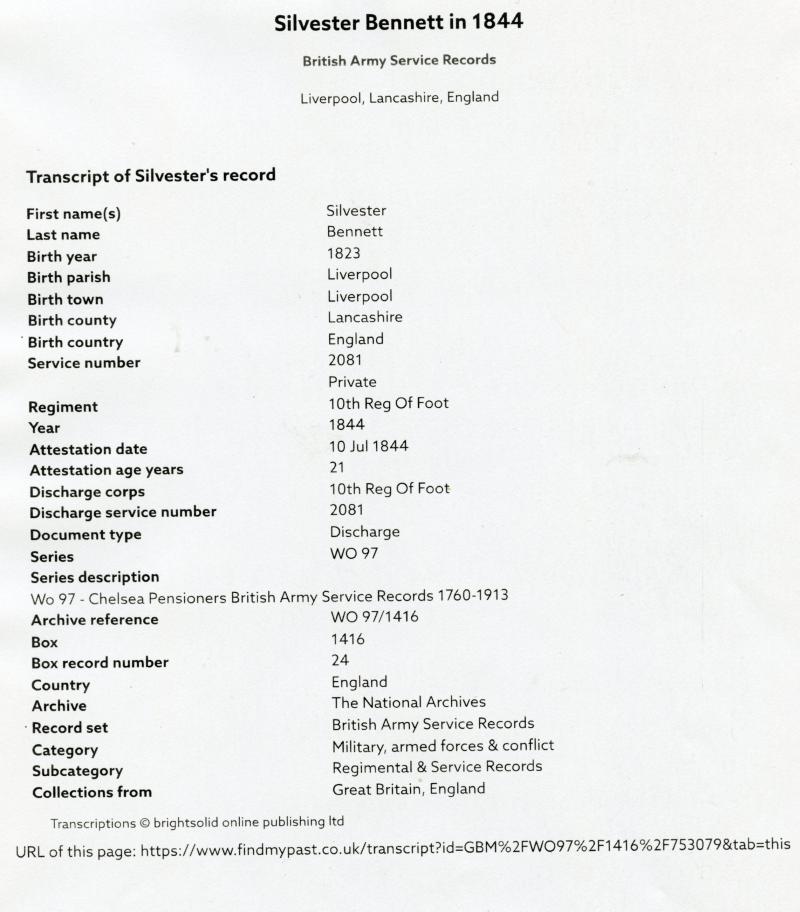 With copy of Service papers Born in Liverpool in 1823