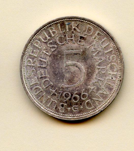 Germany 5 Marks Dated 1966 G Condition EF Ref KM 112 Fineness: 0.6250 Weight: 11.2g ASW: 0.2251oz