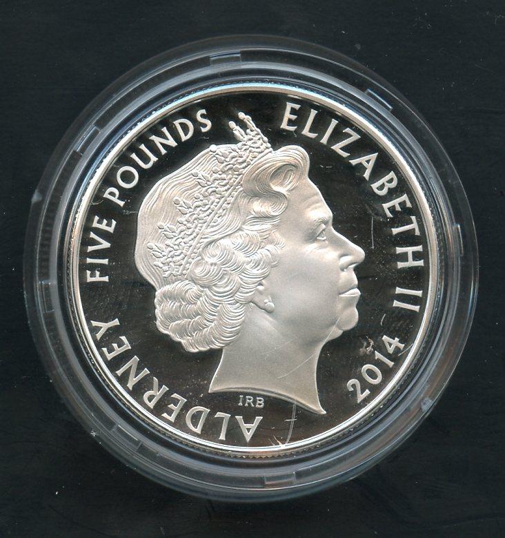 Alderney 2014 Remembrance Day Silver Proof £5 Five Pound Crown Coin In Royal Mint Case of Issue with certificate