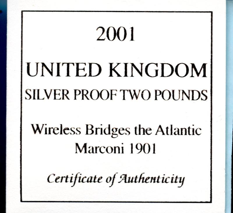 UK 2001 Marconi Commemorative Silver Proof £2 Two Pound Coin In Royal Mint Box With Certificate