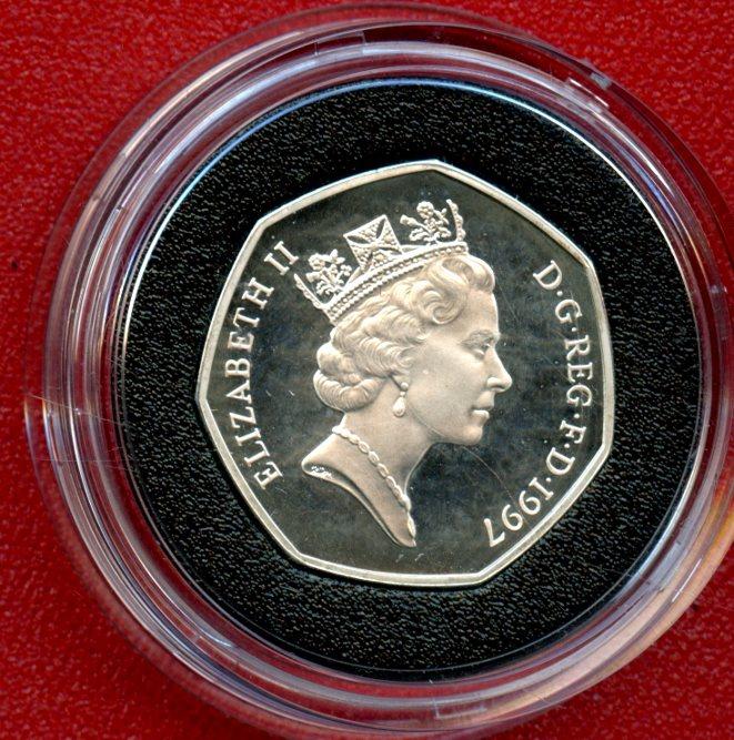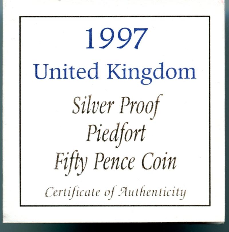 UK 1997 Standard Issue Silver Proof Piedfort 50p Fifty Pence Coin In Royal Mint box of issue with certificate