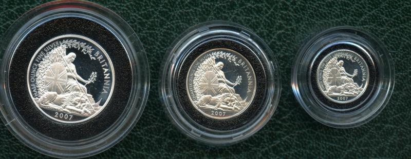 UK 2007 Silver Proof Britannia Coin Set 4 Coin Set 1 Ounce,1/2 Ounce, 1/4 Ounce, 1/10 Ounce in fitted Royal Mint Box of Issue with certificate