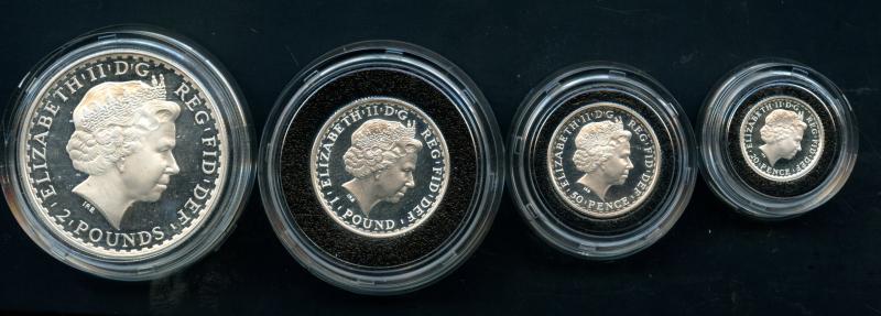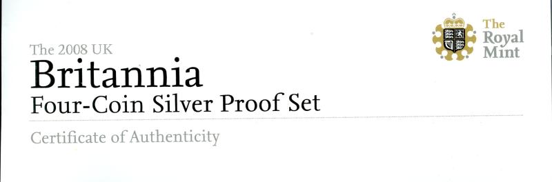 UK 2008 Silver Proof Britannia Coin Set 4 Coin Set 1 Ounce,1/2 Ounce, 1/4 Ounce, 1/10 Ounce in fitted Royal Mint Box of Issue with certificate