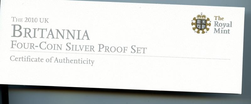 UK 2010 Silver Proof Britannia Coin Set 4 Coin Set 1 Ounce,1/2 Ounce, 1/4 Ounce, 1/10 Ounce in fitted Royal Mint Box of Issue with certificate