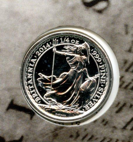 U.K.2014 Royal Mint Silver Proof Quarter Ounce SS Gairsoppa Britannia Coin In Royal Mint Pack of Issue with CD Silver Rush the story of SS Gairsoppa