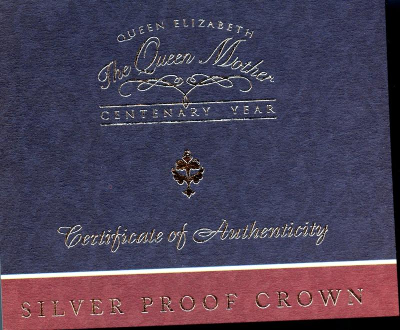 UK 2000 Queen Elizabeth The Queen Mother Centenary Silver Proof £5 Five Pound Crown Coin In Royal Mint Case of Issue with certificate