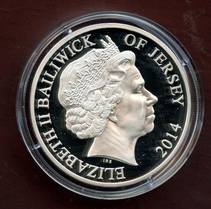 2014 Jersey 100 Poppies Silver Proof £5 Five Pound Crown Coin with 24 carat Gold Plating In Royal Mint Case of Issue with certificate