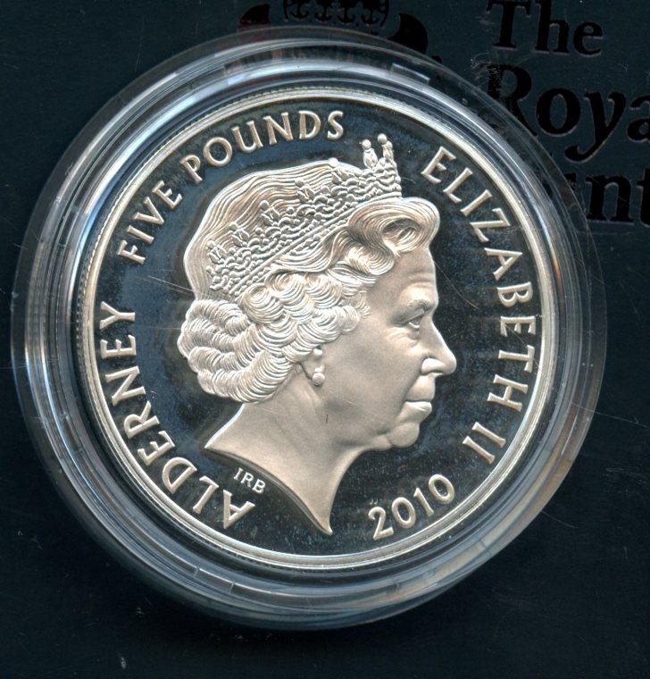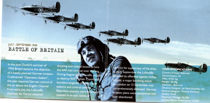 2010 Alderney Battle of Britain 70th Anniversary Silver Proof £5 Five Pound Crown Coin In Royal Mint Case of Issue with certificate