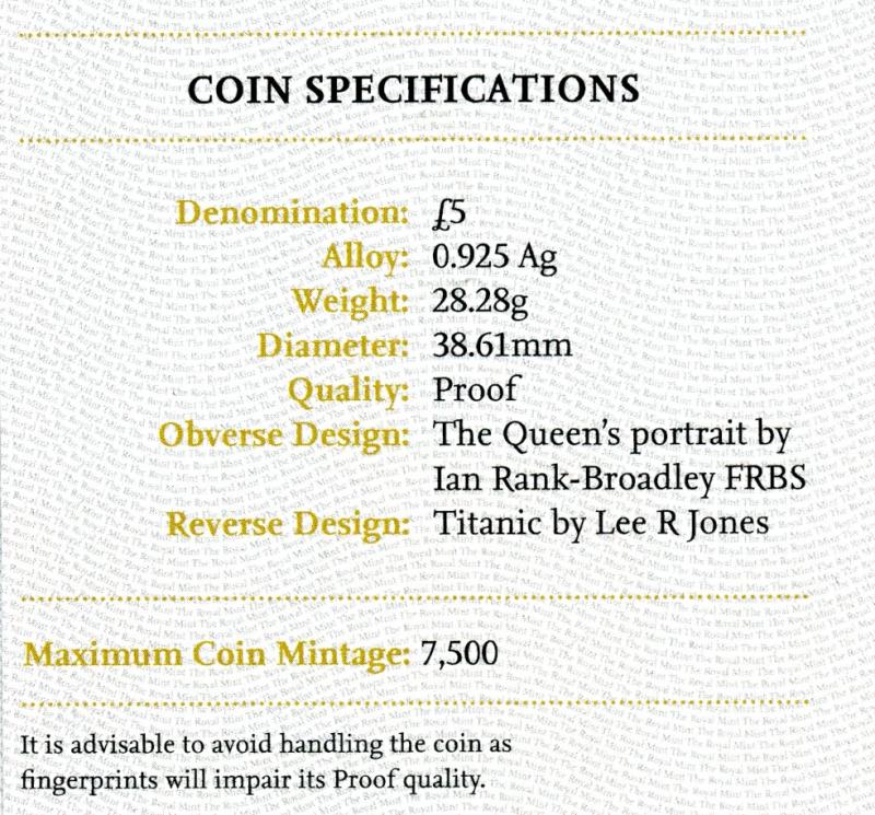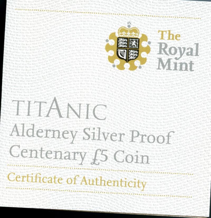 2012 Alderney Titanic Centenary Silver Proof £5 Five Pound Crown Coin In Royal Mint Case of Issue with certificate