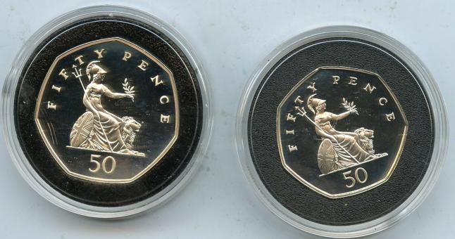 UK 1997 Silver Proof Royal Mint 50 Pence 2 Coin Set Large and Small Size 50 pence coins of 1997