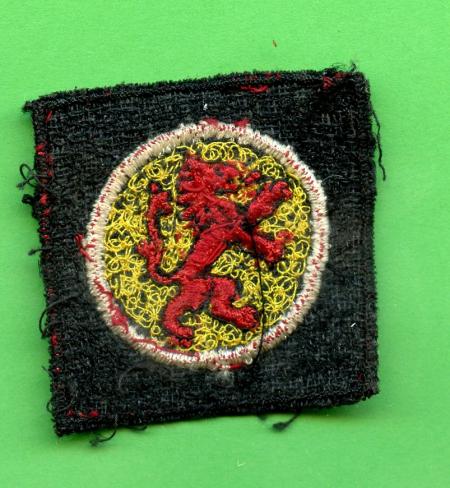 WW2 15th Scottish Infantry Division Cloth Formation Patch Badge The red lion rampant on a yellow field is from the Royal Coat of Arms of Scotland.