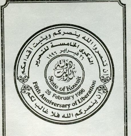 Kuwait 1996 Silver Proof Central Bank of Kuwait Fifth Anniversary of Liberation Day 5 Dinars Coin In box of Issue with certificate