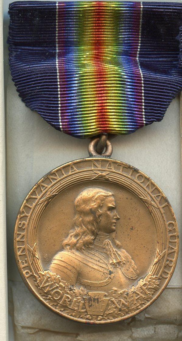 U.S.A United States of America Pennsylvania National Guard WWI Victory Medal In original box of Issue wrapped in tissue with Ribbon Bar & Envelope