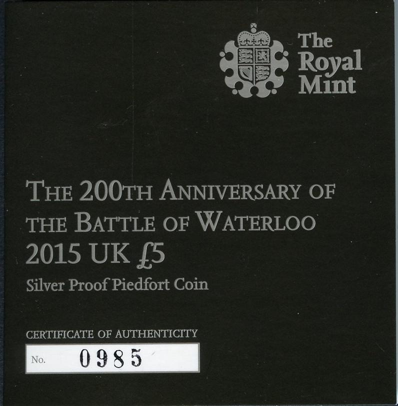 UK 2015 200th Anniversary Battle of Waterloo Silver Proof Piedfort £5 Five Pound Crown Coin In Royal Mint Box of Issue