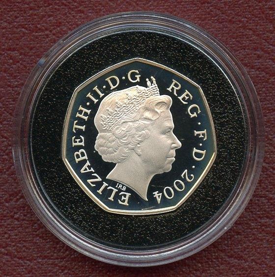UK 2004 Roger Bannisters One Minute Mile 50th Anniversary Silver Proof Piedfort Fifty Pence Coin In Royal Mint Box With Certificate
