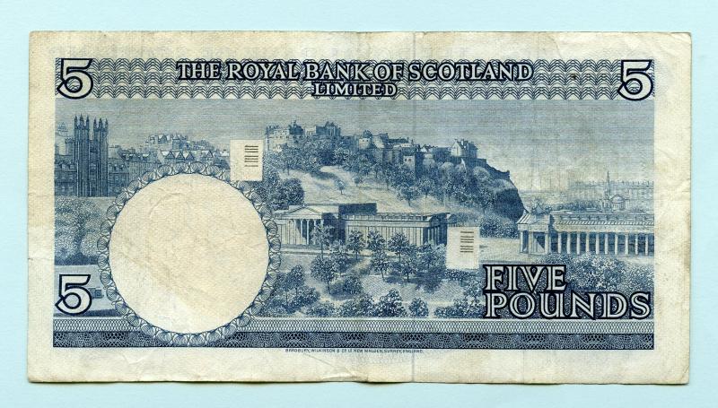 Royal Bank of Scotland £5 Five Pounds Note Dated 19th March 1969. Serial Number A4 061195 Signatories Robertson & Burke Condition VF Ref Banknote Yearbook SC816a PMOS RB70