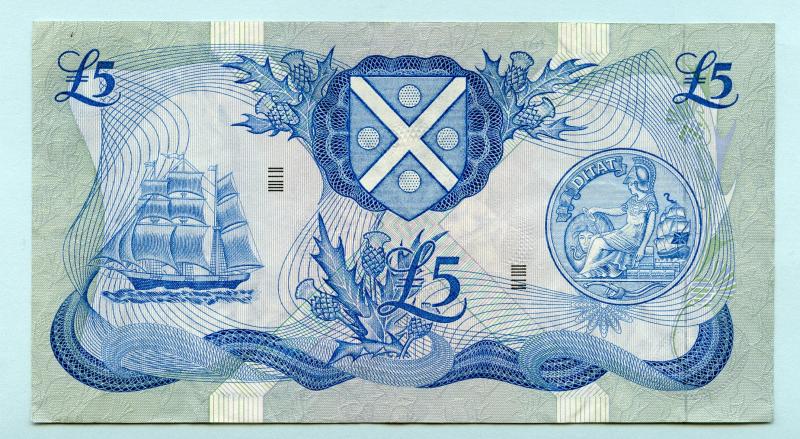 Bank of Scotland £5 Five Pounds Note Dated 5th September 1973 Serial T 635274 Signatories Clydesmuir & Russell Condition GVF Ref Banknote Yearbook SC121B PMOS BA 114B