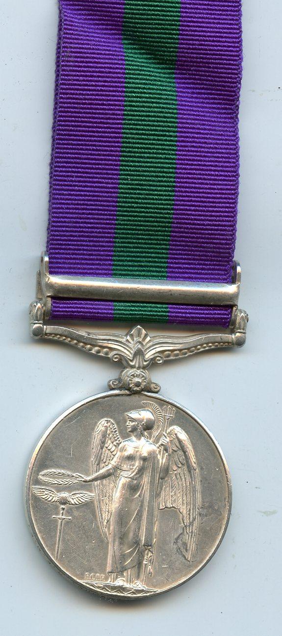 General Service Medal 1918-62 : 1 Clasp : Palestine 1945-48 19017804 Cfn K. F. Brown, REME Condition EF