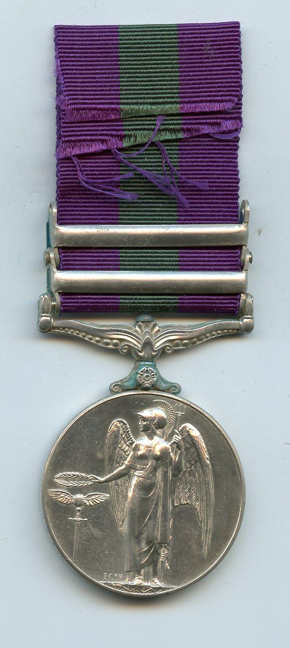 General Service Medal 1918-62 2 Clasps : Malaya, Arabian Peninsula S/19112555 Cpl D. G. James, R.A.S.C. Condition VF