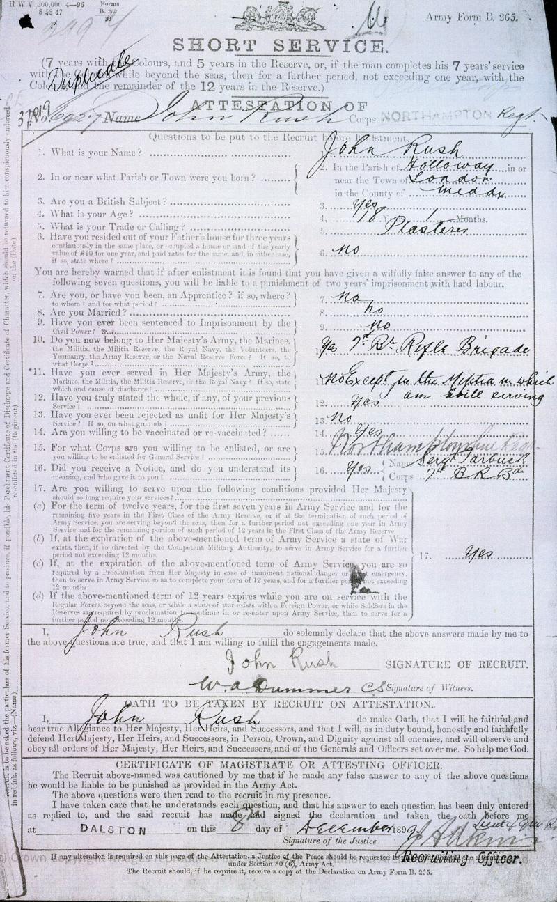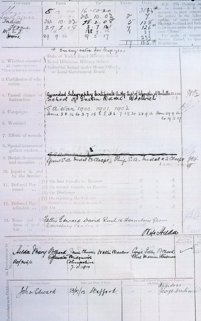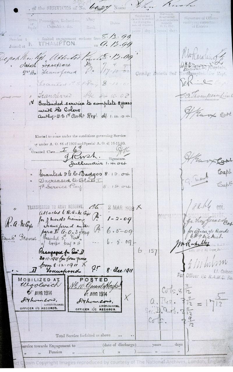 With copy of service papers Born in 1881 in Holloway Middlesex