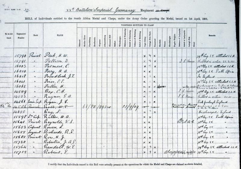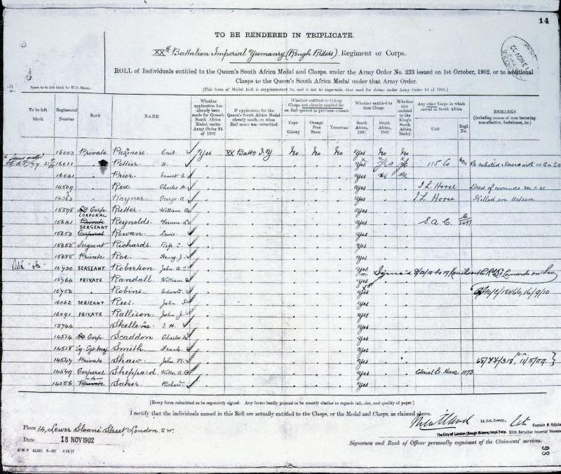 served with 78th company 20th Battalion, Imperial Yeomanry, City of London Yeomanry (Rough Riders),