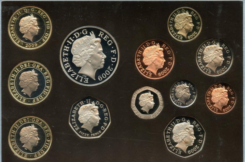 UK 2009 Royal Mint Executive Proof Coin Set with Kew Gardens 50p 12 Coins in set In Royal Mint Box of Issue Executive Issue Set in Royal Mint wooden box