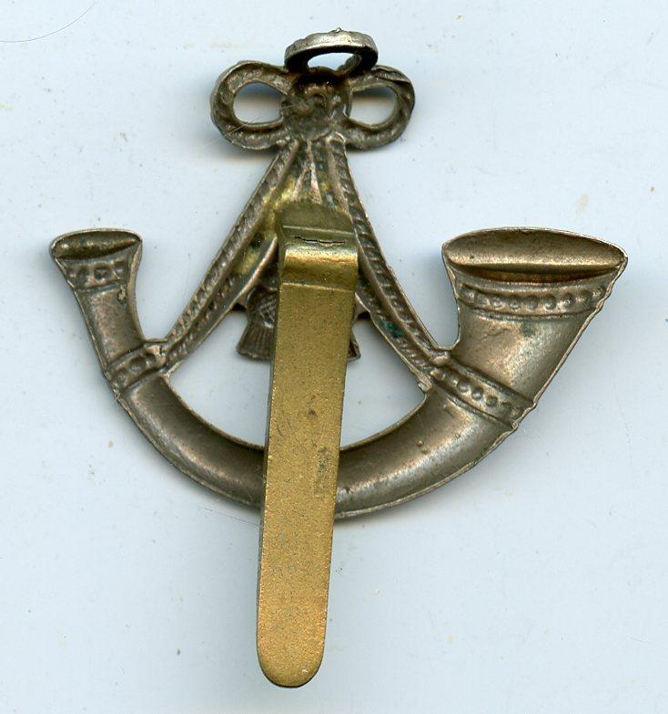 Oxford & Buckinghamshire Light Infantry White Metal Cap Badge Slider Fitting Ref K&K 658
