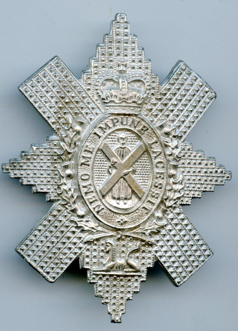 The Royal Highlanders The Black Watch Queen's Crown Silver Plated Metal Cap Badge With Red Hackle 2 lug
