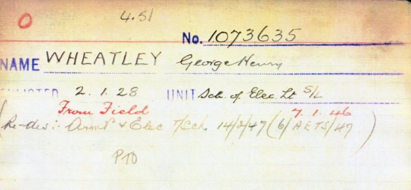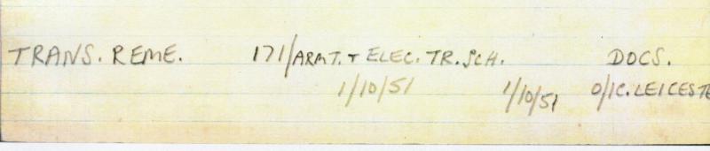 Transfered to The R.E.M.E. in 1951 171/ Armt & Elec TR. Sch