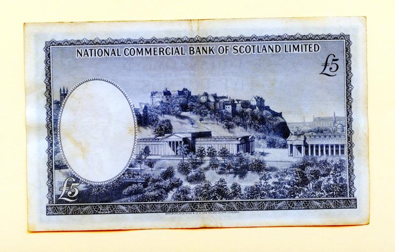National Commercial Bank of Scotland £5 Five Pounds Banknote Dated 1st October 1964