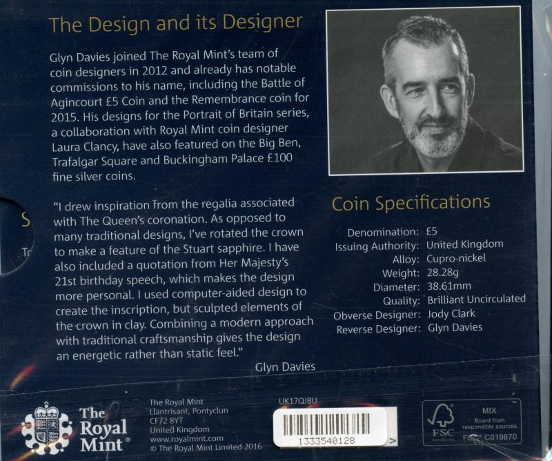 2016 UK Royal Mint Brilliant Uncirculated 65 Years of Loyalty £5 Coin In Royal Mint Packet of Issue