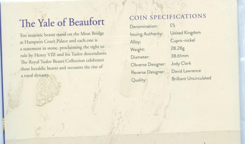 UK Royal Mint 2022 The Royal Tudor Beasts The Yale of Beaufort Brilliant Uncirculated £5 Coin In sealed Royal Mint pack of Issue