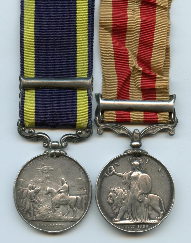 Punjab Medal 1849 ; 2 Clasps Goojerat, Mooltan ( - ilvester, Bennett, 10th Foot); India Mutiny Medal 1857 : 1 Clasp Lucknow ( S. Bennett, 1st Batn 10th Regt)