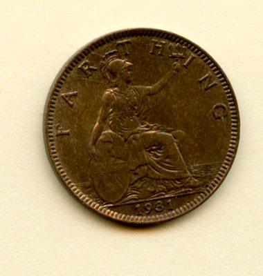 UK George VI Farthing Coin Dated 1931